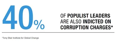 Throughout the world, political leaders who run on a populist platform are gaining power and undermining democracy. High corruption rates can contribute to increased support for populist candidates.