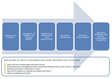 But corruption risks can occur at every step of the chain, from awarding of contracts and licenses to determining how to spend revenues.