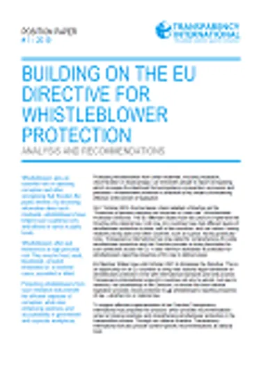 This report is an overall assessment of the adequacy of whistleblower protection laws of 27 member countries of the European Union (EU). It also looks at a range of political, social and other factors that promote or discourage whistleblowing in the workplace, and that enable or inhibit the enactment of whistleblower laws in EU countries. It identifies general and specific issues in need of improvement – both in terms of strengthening whistleblower protection for employees and for enhancing the acceptance and appreciation of whistleblowing.This report is based on in-depth country-level studies conducted by researchers throughout Europe. The background material was used to develop the findings, conclusions and recommendations presented here, and it formed the basis for the individual profiles on each country.